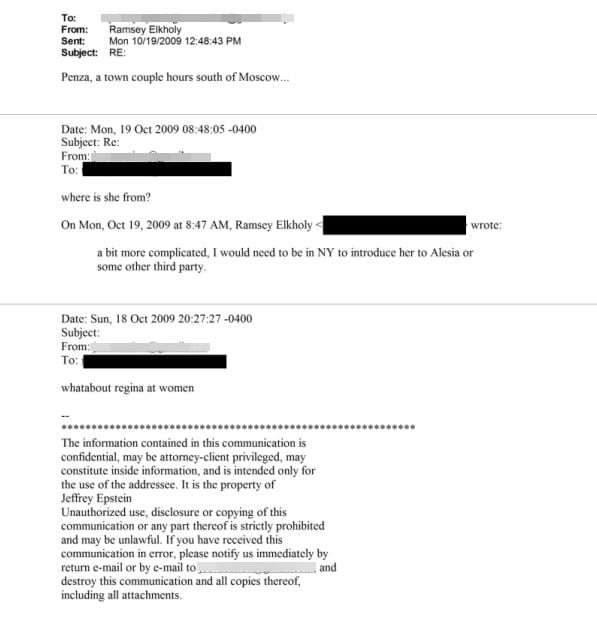 В одном из опубликованных на сайте министерства юстиции файлов под номером EFTA02438887 есть переписка Эпштейна с антропологом Рэмзи Элхоли, датированная 2009 годом. В документе - выдержки из электронных сообщений, часть которых остается засекреченной.