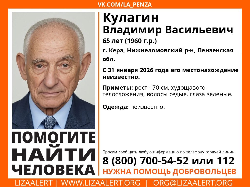 Информация о пропаже Владимира Кулагина 1960 года рождения, проживающего в селе Кера Нижнеломовского района Пензенской области, появилась в телеграм-канале поискового отряда «ЛизаАлерт Пенза».