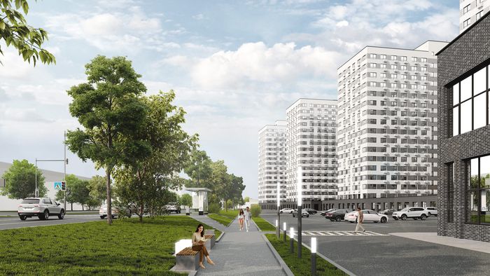 Двор без машин, пешеходный бульвар - все для комфорта жителей. На первых этажах разместится коммерция, в которой будут представлены кафе, магазины, аптеки, салоны красоты. Взаимовыгодное решение, которое дает жителям качественные товары и услуги, а бизнесменам – массовый клиентский трафик.