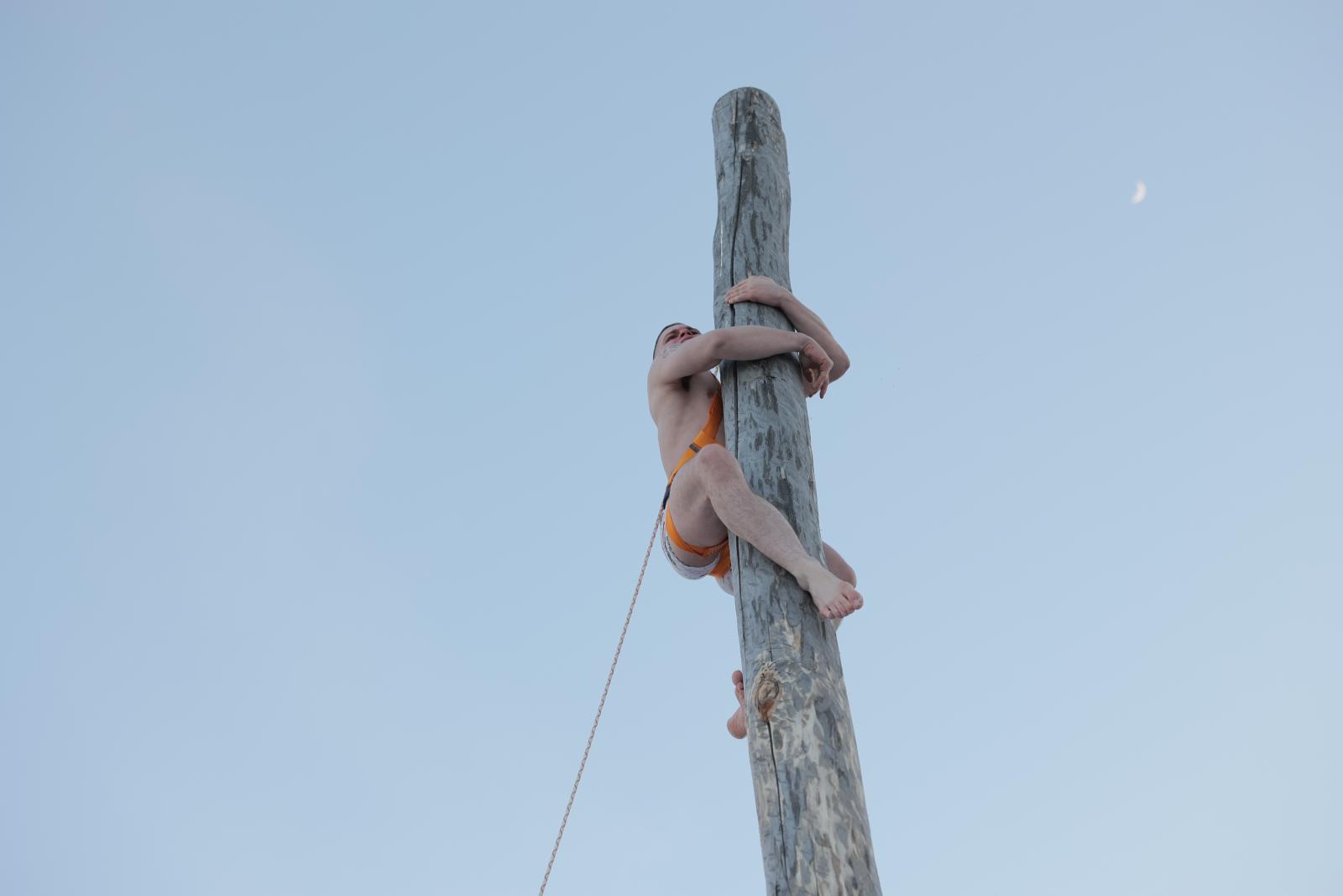 Самые ценные подарки от партнеров мероприятия разыграли на столбе, который покоряли самые удалые гости.