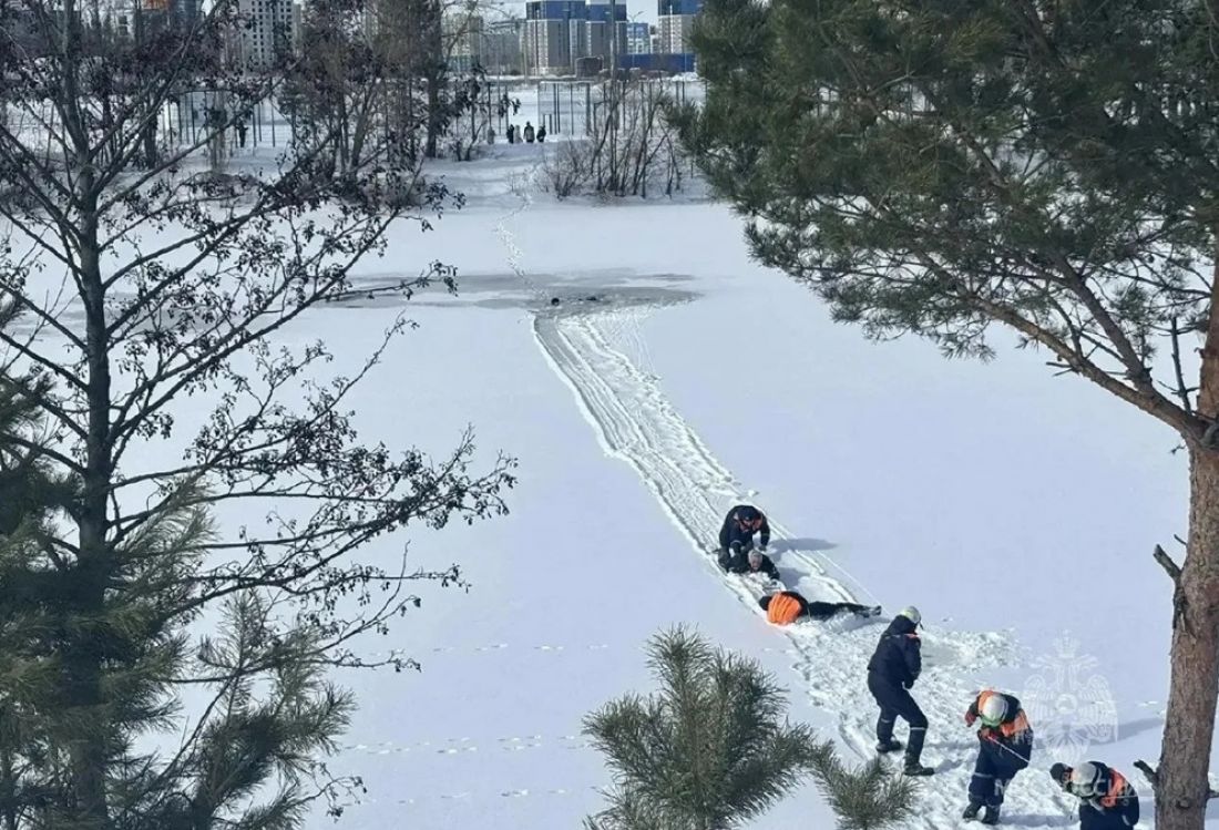 Появились фото спасения мужчины, провалившегося в полынью в Засечном