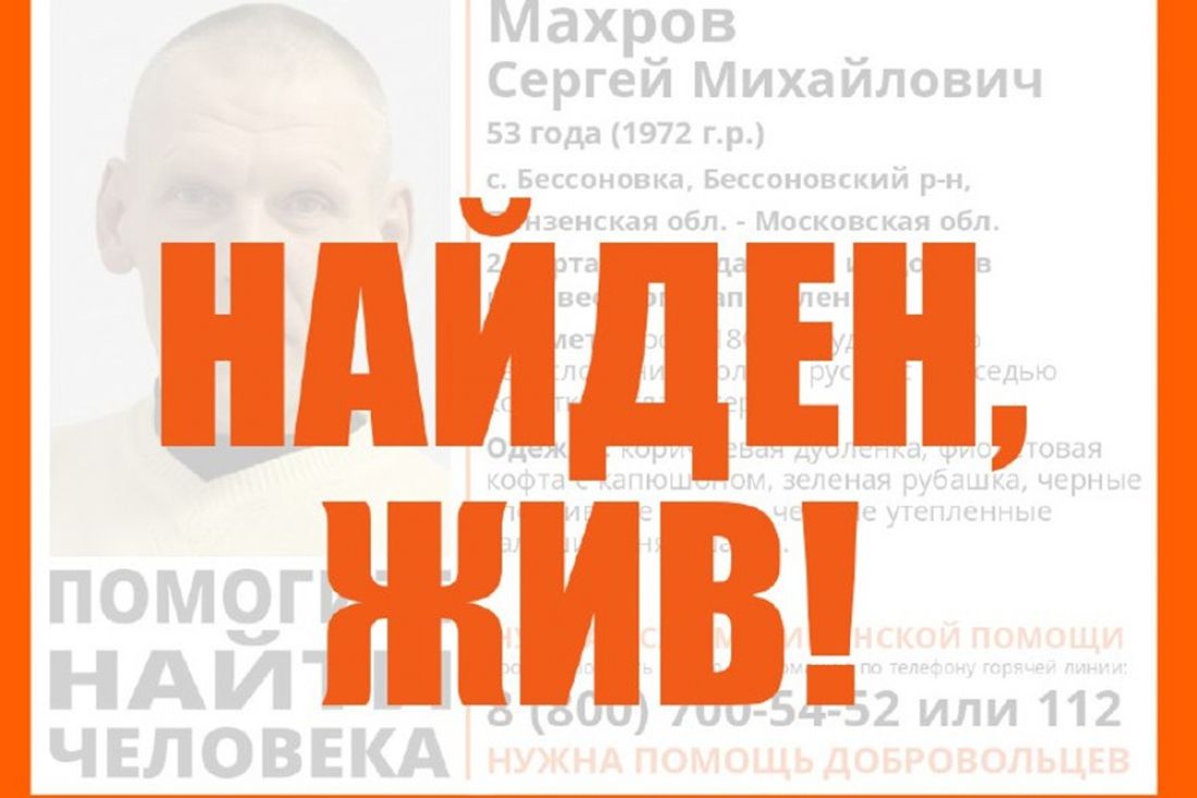 О том, что 53-летний Сергей Махров был найден живым, сообщили представители поискового отряда «Лиза Алерт Пенза» в своем официальном телеграм-канале.
