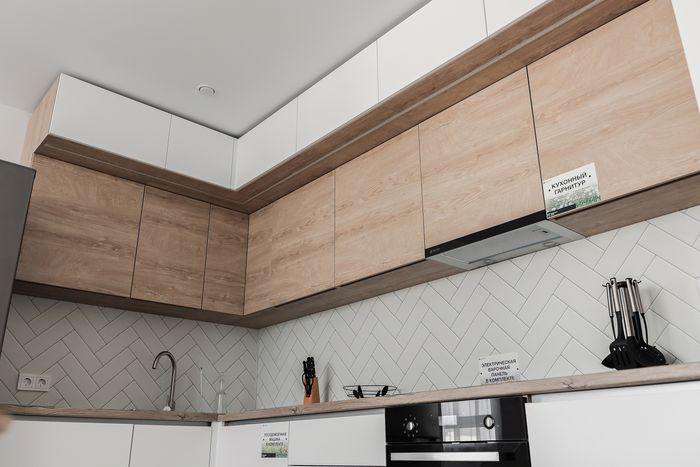 - Кухонный гарнитур и встраиваемую технику: варочную панель, духовой шкаф и вытяжку. А в квартирах большой площади подключена посудомоечная машина.