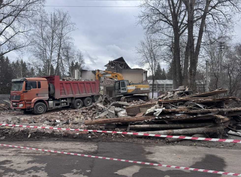 Разбор дома проведут поэтапно и завершат в течение двух месяцев. Подрядчик начал демонтаж крыши и стен, расчистку участка от строительного мусора.