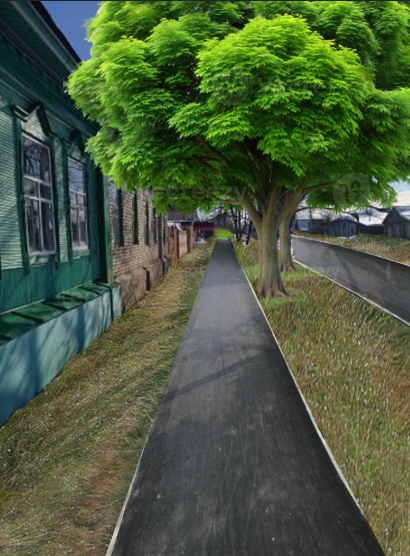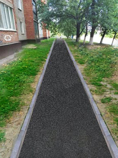 Благоустройство предполагает обустройство асфальтобетонной дорожки, установку бордюрного камня.