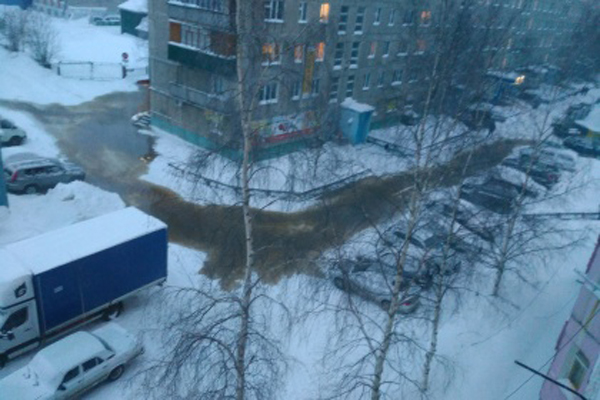 Из-за лопнувшей трубы отопления залило дорогу к детскому саду