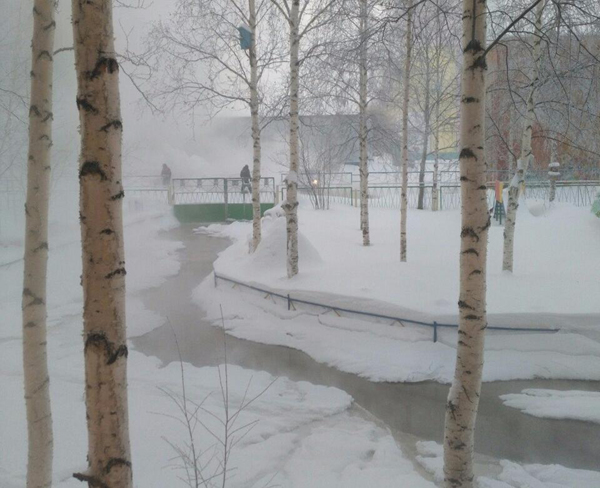 Из-за перепадов погоды в Нижневартовске разорвало трубу отопления. Коммунальное ЧП произошло возле дома №64 по улице Омской.