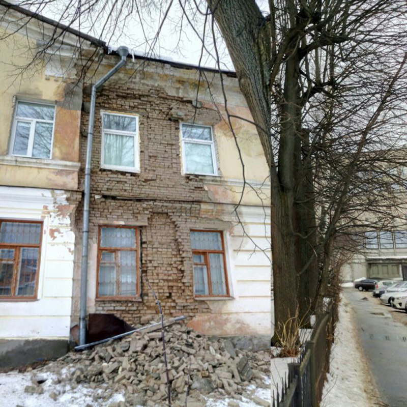 Как пишет портал «Weekend», жилой дом был построен до революции, затем в 1955 году перестроен, а примерно пять лет назад в доме сделали ремонт стен - точнее, замазали штукатуркой трещины и немного подкрасили фасад.