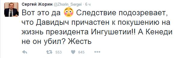 UPD. Интернет издание «Медиазона» цитирует слова Давидыча: «Я когда связывался с этой коррупционной историей, я понимал, мне мама говорила «Не лезь сынок, тебя убьют, посадят». Но они зарабатывают на наших жизнях, на дорогах общего пользования. Я не смирюсь. Меня могут убить в тюрьме».