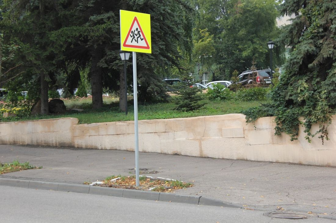 Оригинальное, хотя и спорное использование приствольного квадрата на улице Володарского – в его центре произрастает дорожный знак «Осторожно, дети». Знак, учитывая близость пензенской гимназии № 4, вполне уместный. Правда, установлен он в не предназначенном для этого месте.