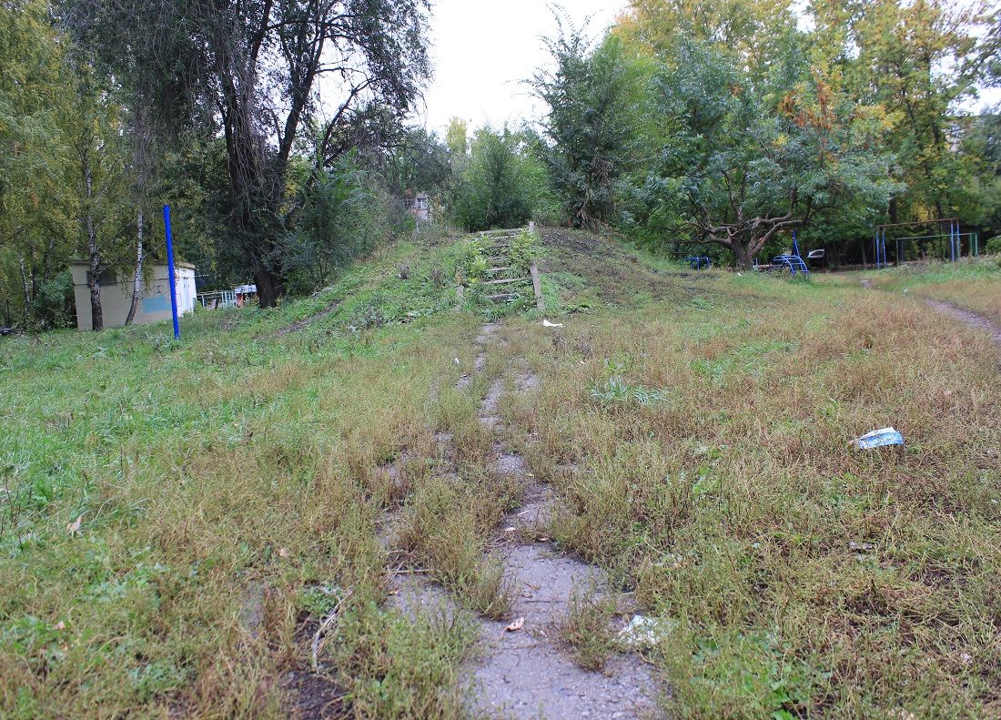Это не скифский курган и не братская могила. Это детская площадка в одном из дворов на улице Островского, сразу за магазином «Буратино». В конце семидесятых на этом месте поставили горку. Впрочем, благодаря раздолбайству и детскому вандализму из четырех спусков вскоре осталось два, и то катание по ним представляло опасность для штанов и целостности пятой точки. В середине девяностых спуски демонтировали, и конструкция приобрела весьма загадочный вид – то ли беседка, то ли пагода.