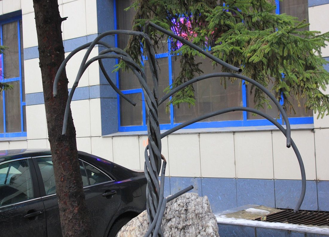 Сказать трудно. Находится этот артобъект рядом с магазином «12 стульев». Возможно чей-то креатив так попер, что вырвался из земли. Может быть, многоголовая коммунальная гидра вырвалась на свободу, а может, это незаконнорожденный отпрыск высоковольтного кабеля и растущей рядом ели. Гадать – дело неблагодарное, если кто-то из пензенцев знает ответ на вопрос, пусть пишет в комментариях.