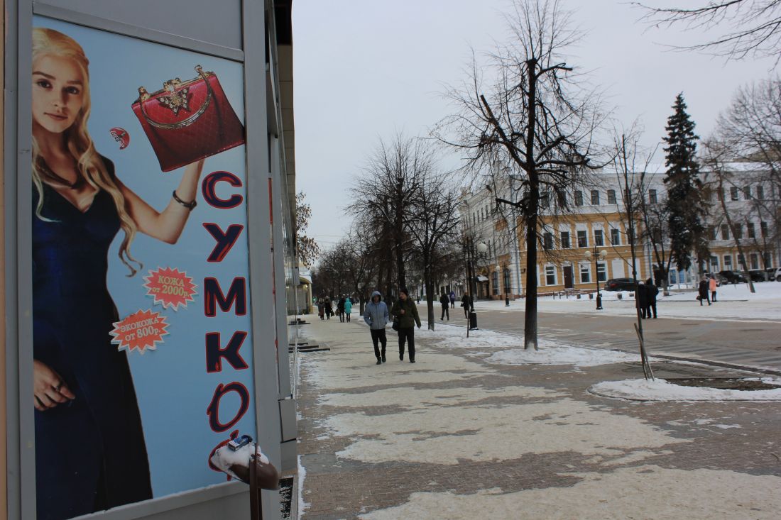 Внимательные прохожие могли заметить на одном из рекламных плакатов на улице Московской актрису Эмилию Кларк в образе Дейенерис Таргариен из сериала «Игра престолов».