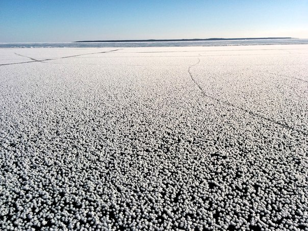 Ладожское озеро покрылось гигантскими снежинками, похожими на ледяные цветы. Как сообщает портал «news.mail.ru», снежные соцветья очень хрупкие и рассыпаются при малейшем прикосновении.