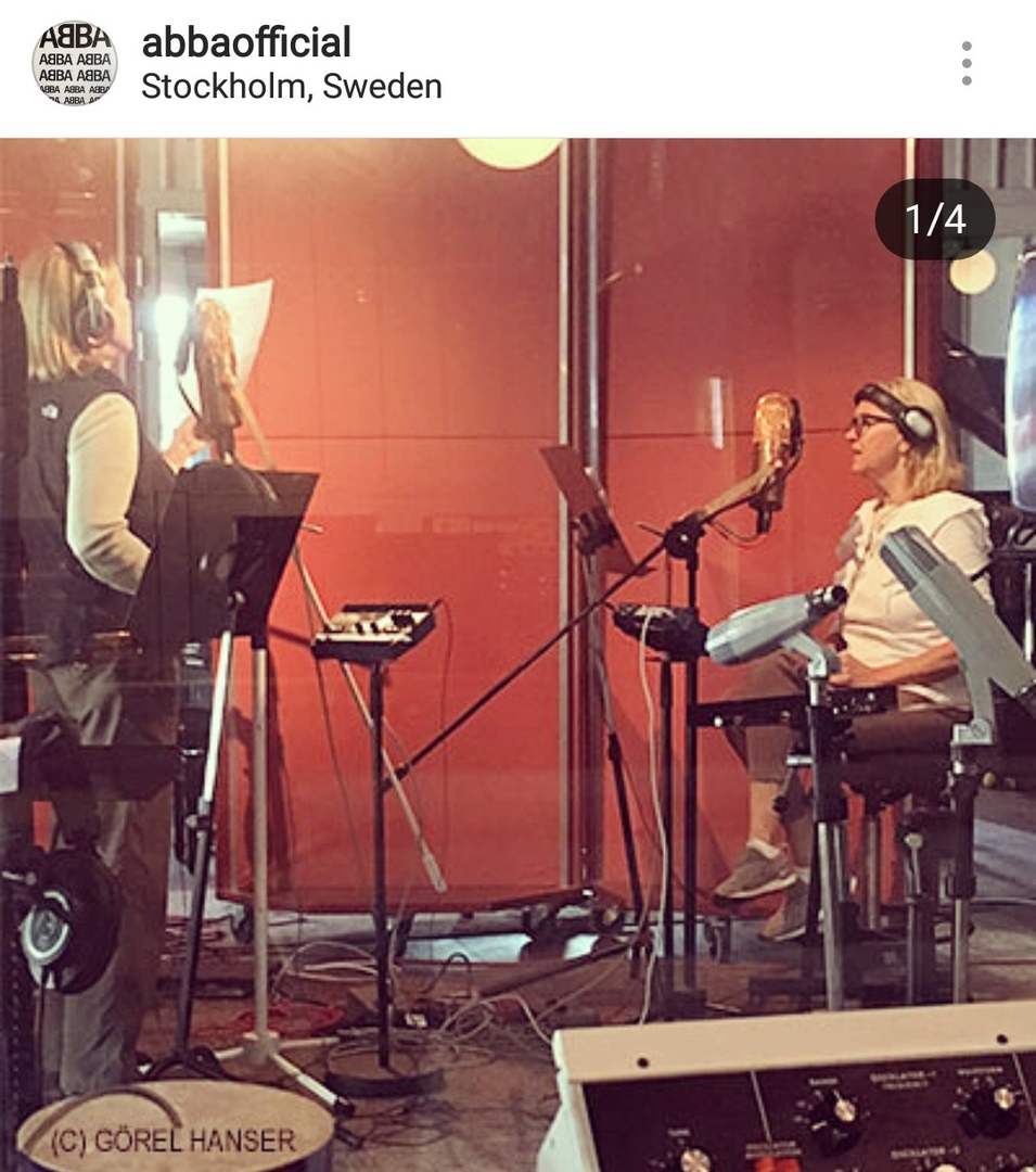 «Фрида, Агнета, Бьорн и Бенни в стокгольмской студии RMV записывают пару новый песни! Их релиз - в конце этого года» , - гласит запись под фото.