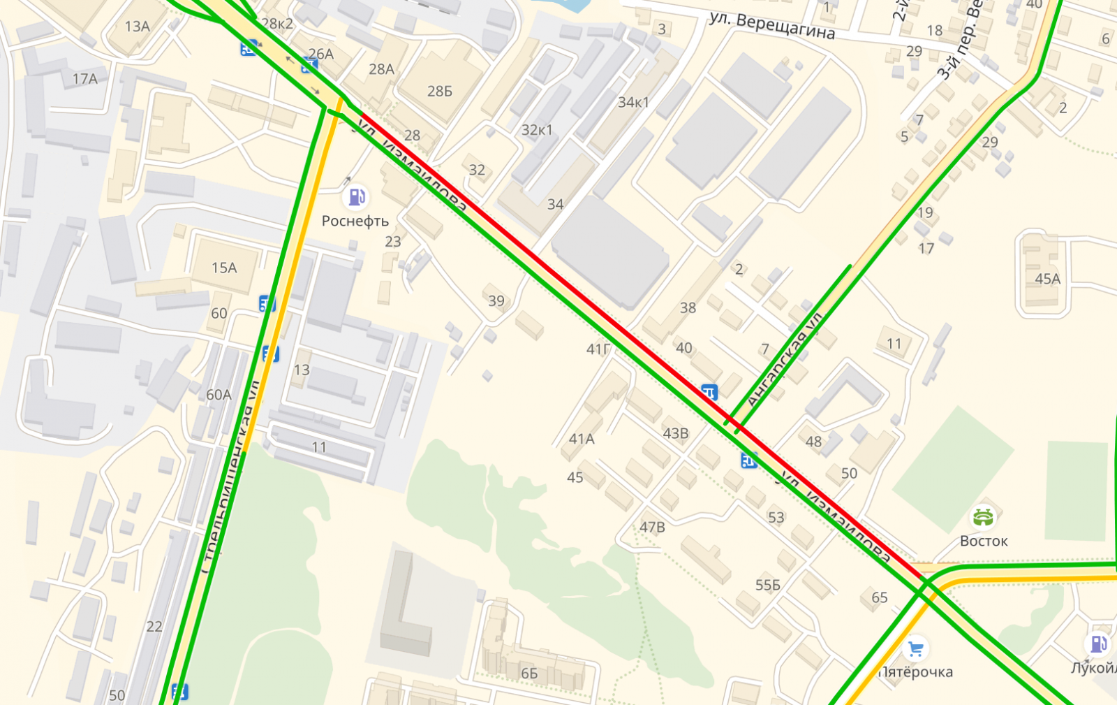 По данным сервиса Яндекс.Карты, ограничено движение на улицах Суворова и Свободы.