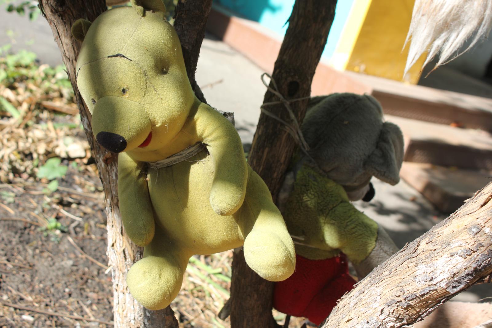 Благоустройство некоторые жители Пензы понимают как-то совсем своеобразно. Поначалу, видимо, после программы «Очумелые ручки», во дворах многоэтажек начали появляться лебеди из автомобильных покрышек. Черные птицы были лишь зловещим знамением. За ними в палисадниках рядом с домами выросли цветы из пластиковых бутылок. Развитию этого жанра народного творчества можно посвятить несколько томов научных исследований, впрочем, с такими арт-объектами еще хоть как-то можно смириться. Однако неизвестные господа-оформители пошли еще дальше: на деревьях стали вешать отжившие свой век детские мягкие игрушки.