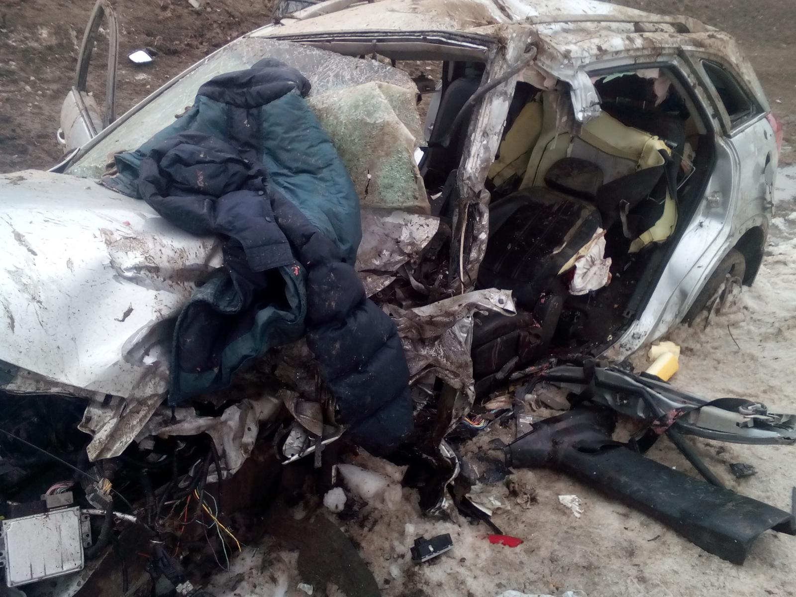 Водитель легковушки скончался на месте, а 63-летняя пассажирка того же авто доставлена в больницу с травмами. Судя по снимкам с места страшного ДТП, в результате столкновения машины превратились в груду металла.