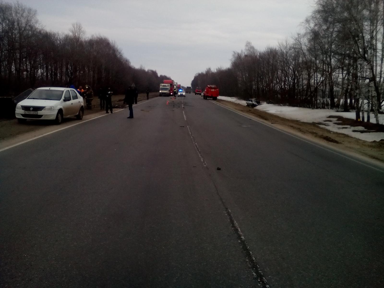 В отделе пропаганды управления ГИБДД по Рязанской области сообщили предварительную причину аварии: водитель первой иномарки не справился с управлением и врезался во вторую машину, ехавшую во встречном направлении.