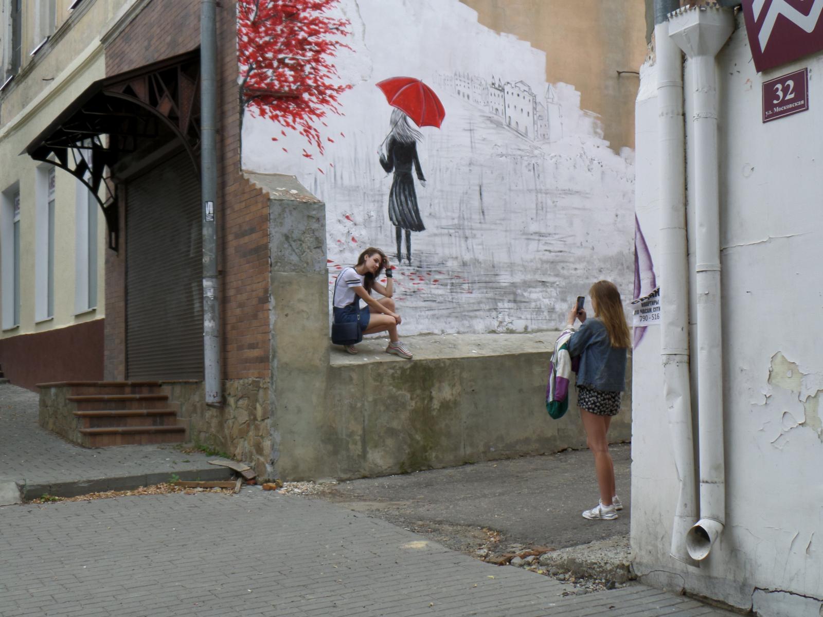 Стрит-арт пришелся по душе не только мне, у новой достопримечательности с удовольствием фотографируются прохожие.