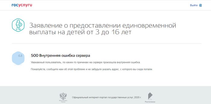 Ранее то же информационное агентство, ссылаясь на данные Минкомсвязи, сообщало, что за первые шесть часов работы сервиса posobie16.gosuslugi.ru был оформлен 1 миллион заявок на анонсированное президентом России пособие.