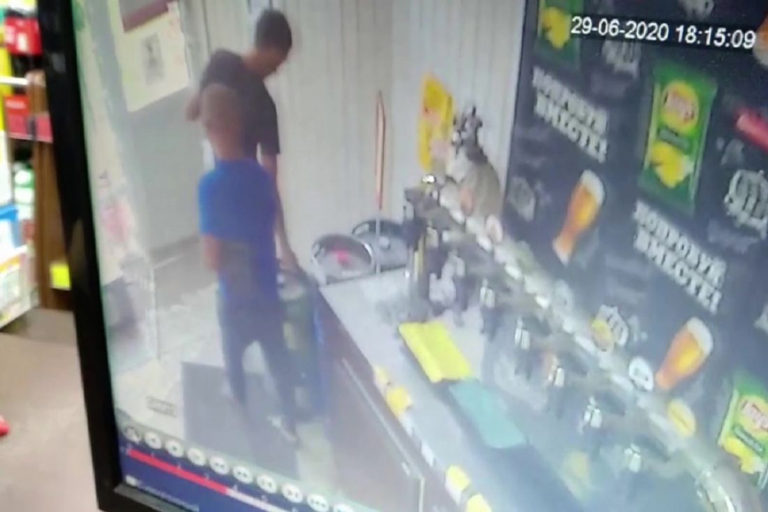 После просмотра камер наблюдения было установлено что крупная емкость стоимостью 7,5 тысяч рублей была похищена двумя неизвестными.