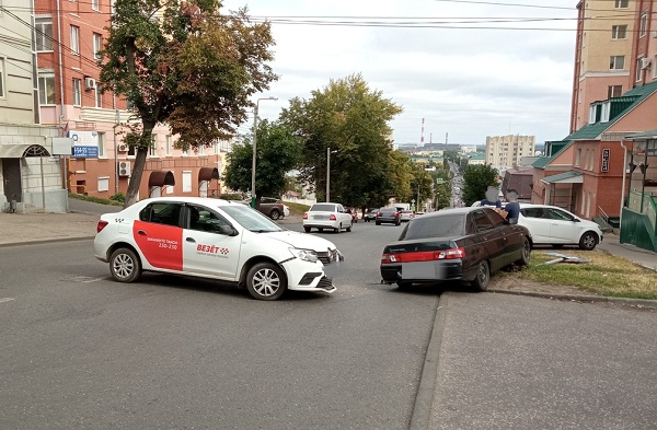 Утренняя авария в Пензе спровоцировала пробку в центре города. На улице Володарского машина «Renault» с символикой такси «Везет» врезалась в отечественную легковушку «ВАЗ-2110».