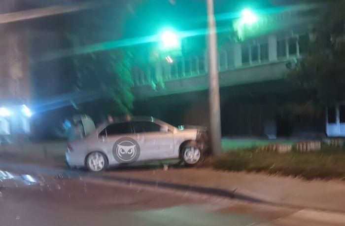 Иномарку вынесло на тротуар, где она врезалась в столб. О людях, пострадавших в аварии, очевидцы не сообщают.