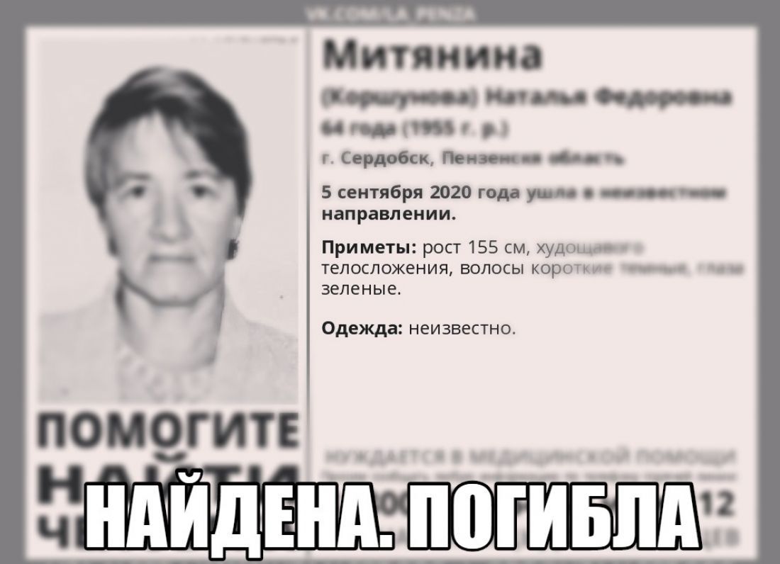 Стали известны подробности обнаружения тела пропавшей 64-летней жительницы Сердобска Пензенской области Натальи Митяниной.