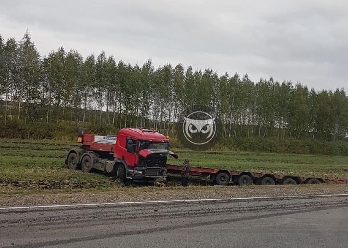 Он опубликовал снимки с места дорожно-транспортного происшествия. Видно, что грузовик с прицепом потерял управление и вылетел в кювет. Другая фура осталась в пределах трассы, но получила механические повреждения, параллельно перегородив дорогу.