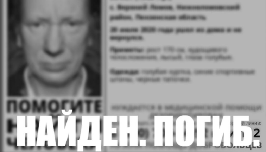 20 июля мужчина ушел из дома и не вернулся, его искали полиция и добровольцы. Сегодня в группе поискового отряда «Лиза Алерт» под ориентировкой на пропавшего появилось сообщение о том, что он найден мертвым.