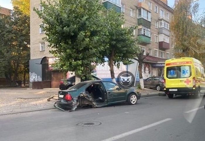 Серьезно пострадал автомобиль «Volkswagen», у которого отвалилось, как минимум, одно заднее колесо. Также на перекрестке стоит еще один автомобиль с разбитой передней частью.