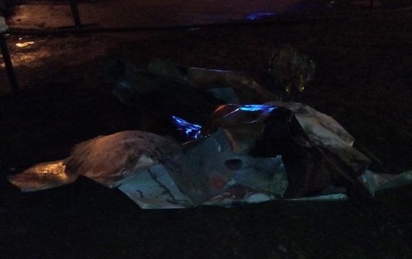 В 20:45 наметились первые успехи в борьбе сотрудников МЧС с огнем. В это время пожарные начали оттаскивать металлические куски бывшей крыши.