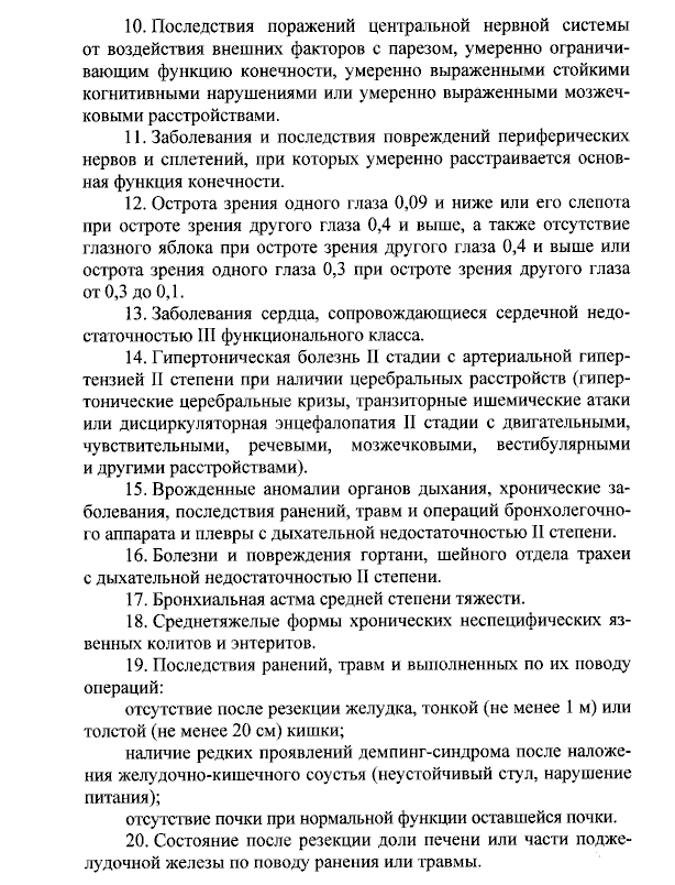 Кроме того, к таким болезням относятся последствия травм кожи, отсутствие конечностей до уровня верхней трети плеча или бедра, отсутствие кисти или же кистевого сустава, отсутствие трех пальцев, на уровне пястно-фаланговых суставов и четырех пальцев на дистальных концах основных фаланг.