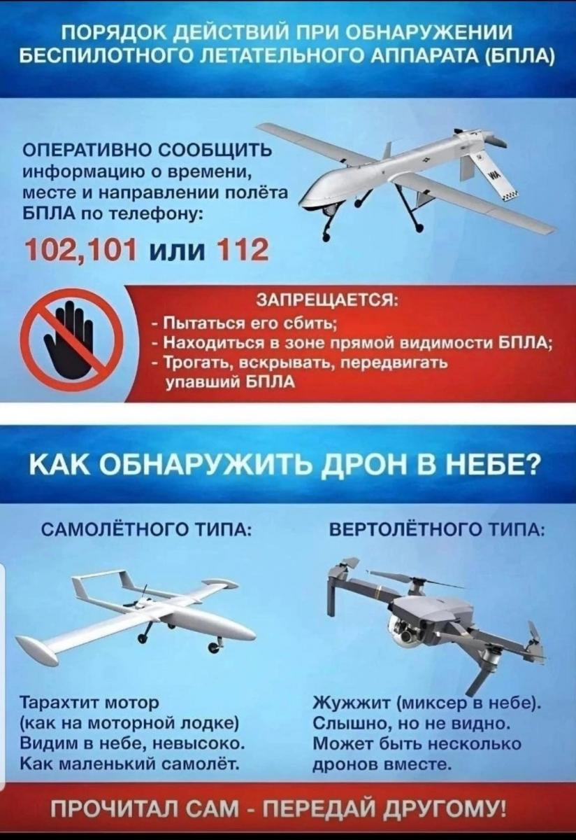 О том, как себя вести при обнаружении беспилотного летательного аппарата, важно знать и жителям. Специалистами разработаны памятки, их следует изучить, чтобы знать, что делать при появлении БПЛА не следует.