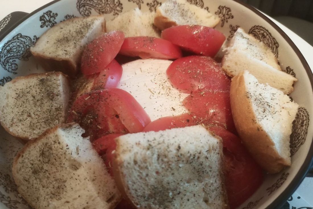 Есть помидоры можно вилкой, а хлеб - руками, обмакивая в сыр, который стал мягким под воздействием высокой температуры. Гостей нужно позвать за стол, пока блюдо горячее и сыр не застыл.