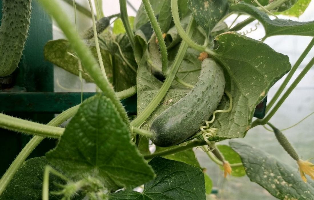 С одного квадратного метра можно собрать более 10 кг огурцов.