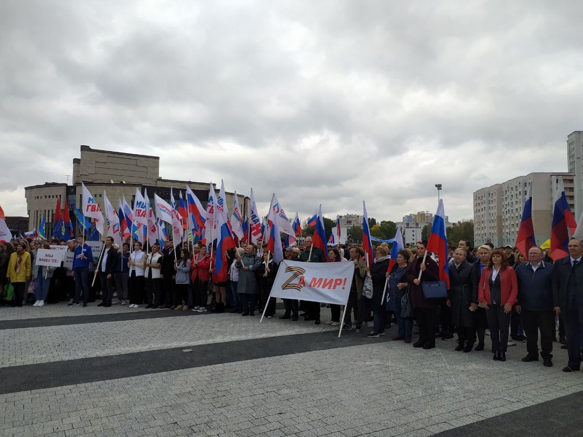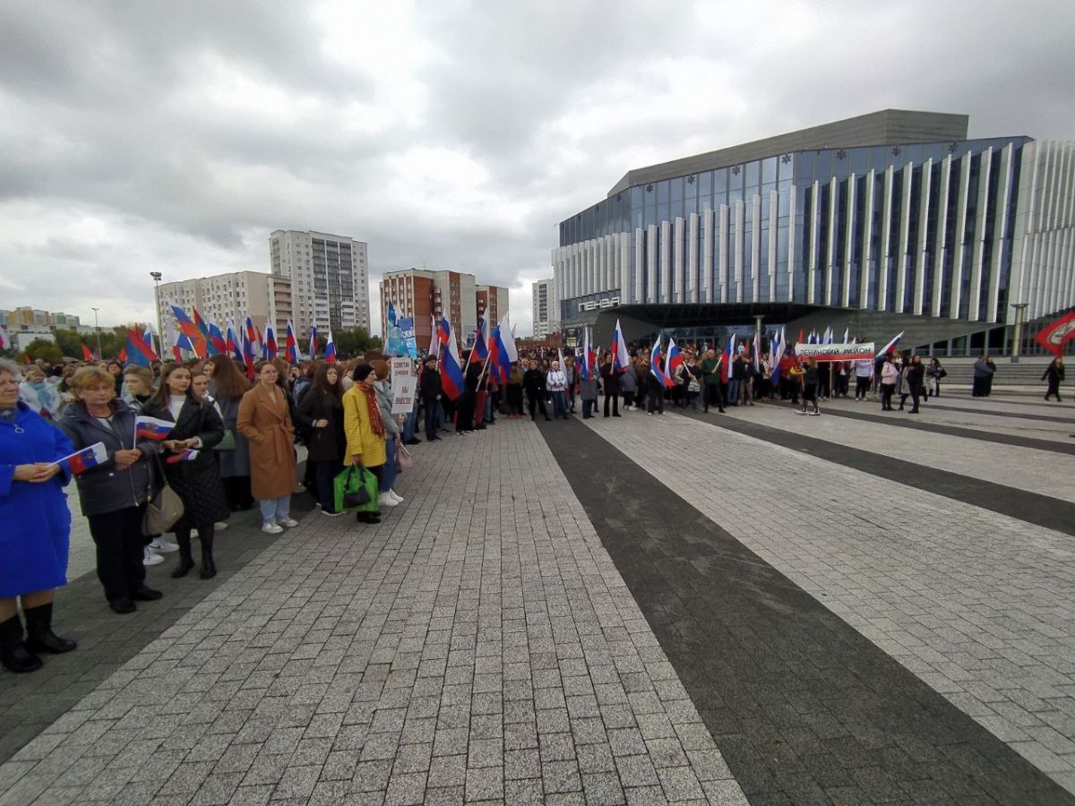 На Юбилейной площади Пензы собралось более 6000 жителей областного центра, чтобы продемонстрироать свою солидарность с решением жителей четырех регионов, выразивших желание войти в состав Российской Федерации.