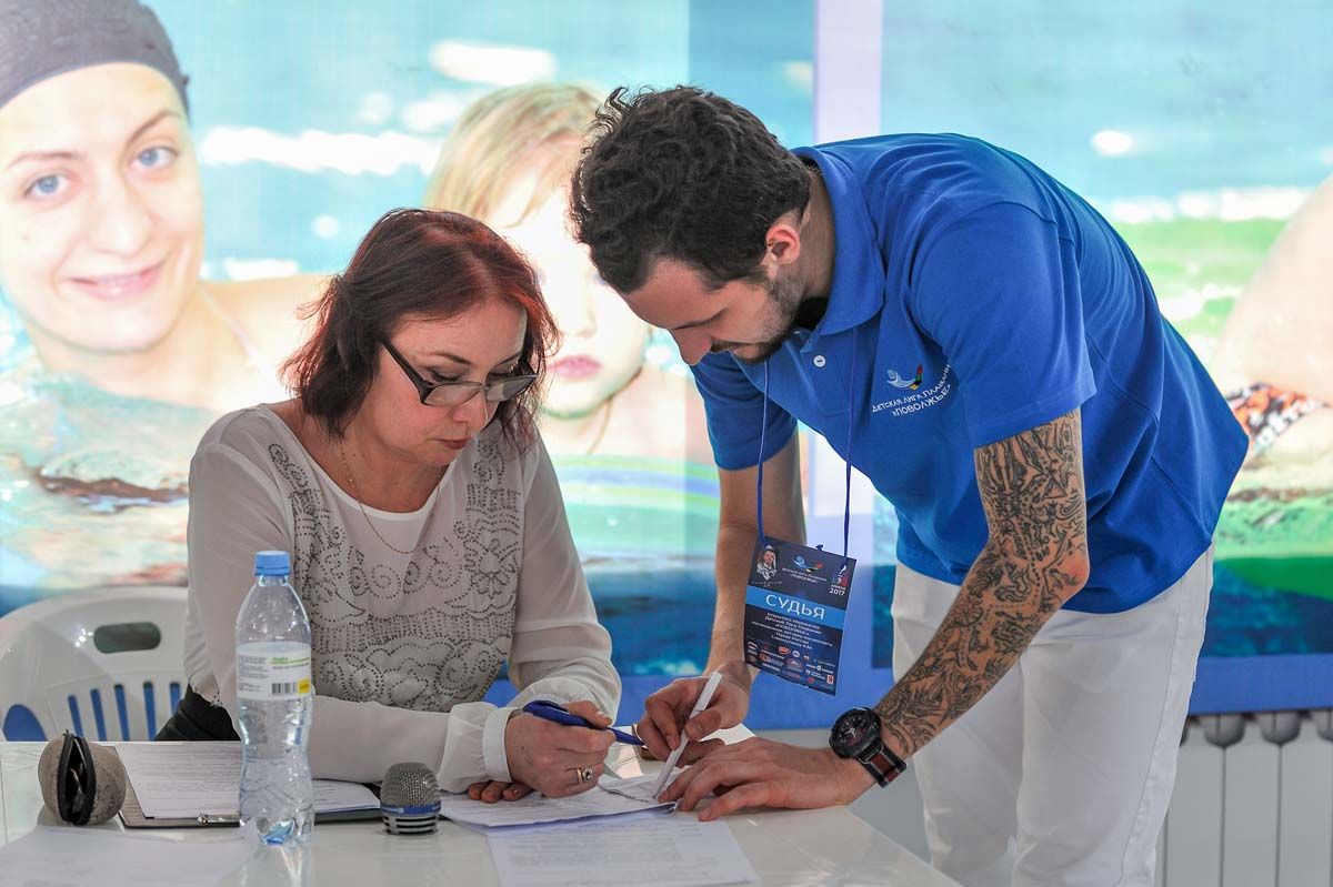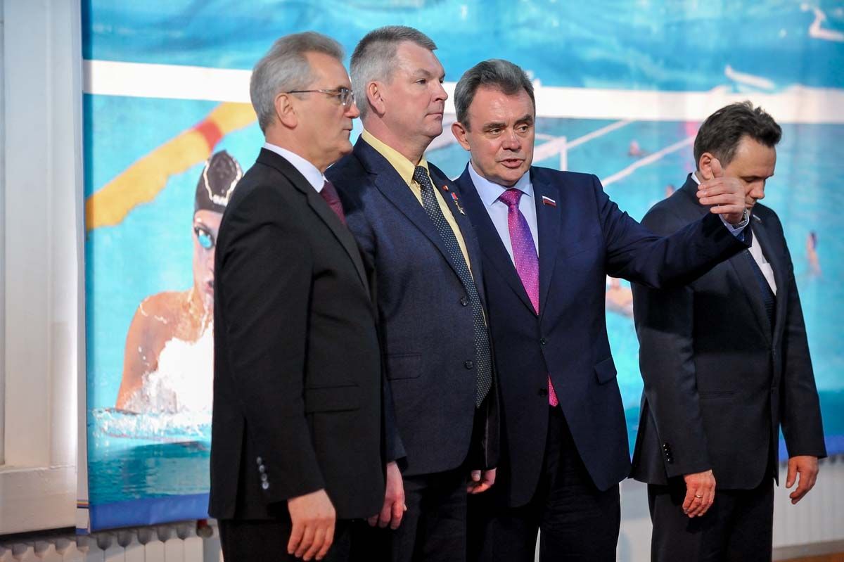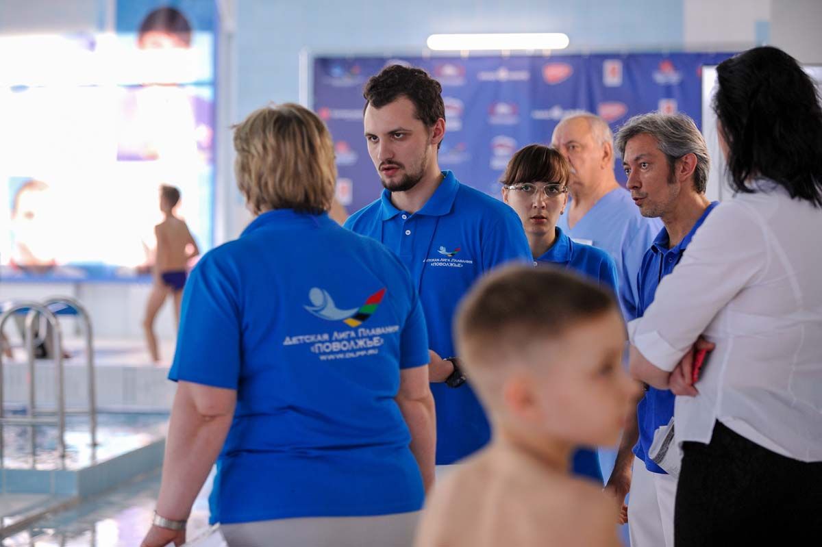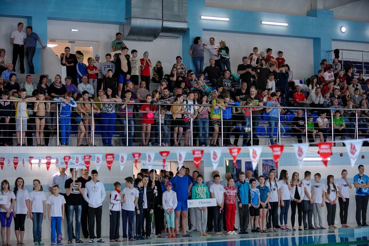 Первый пензенский космонавт Александр Самокутяев на соревнованиях Детской лиги плавания "Поволжье"
