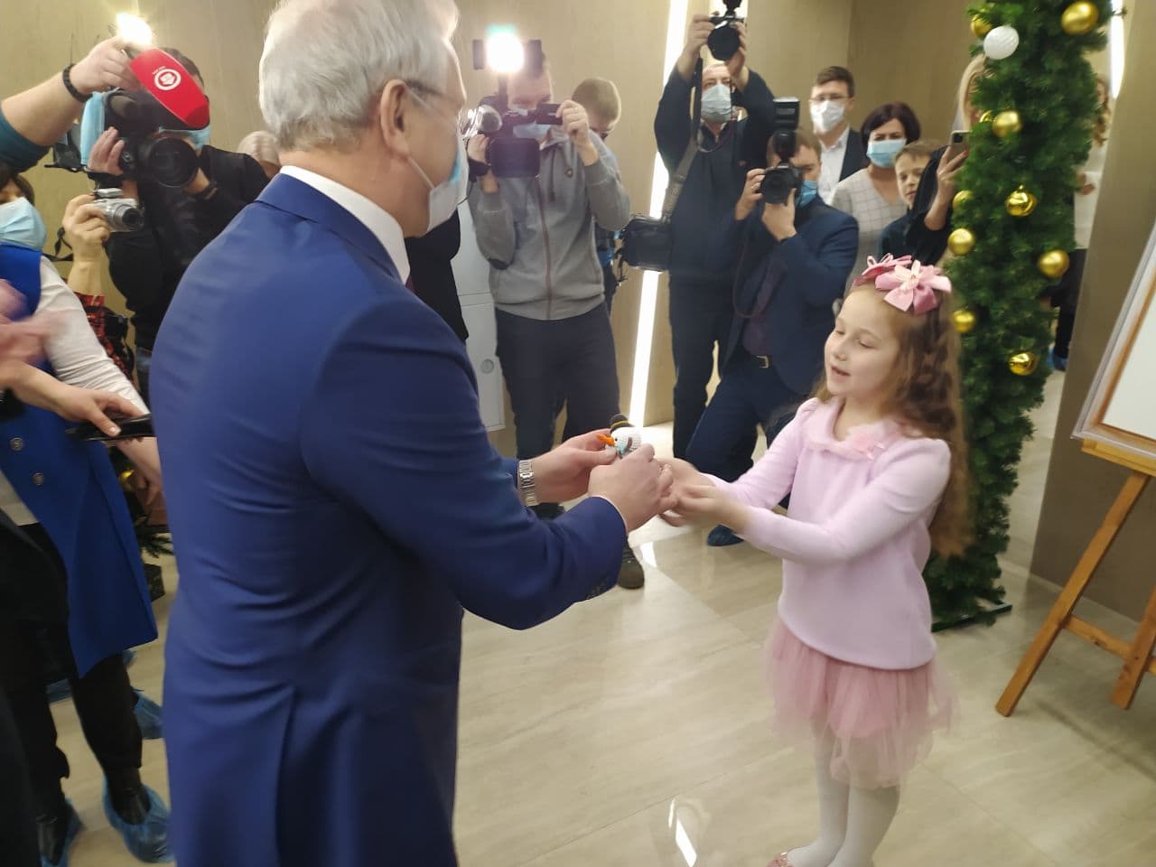 Во время обхода здания губернатора в сопровождении Татьяны Курдовой и Олега Ягова встретила девочка, которая преподнесла главе региона подарок, сделанный собственными руками. «Мне еще никто к Новому году подарков не дарил. Твой первый», - растрогался Иван Белозерцеы, и не замечая группу сопровождения, о чем-то пошептался с маленькой пензячкой.