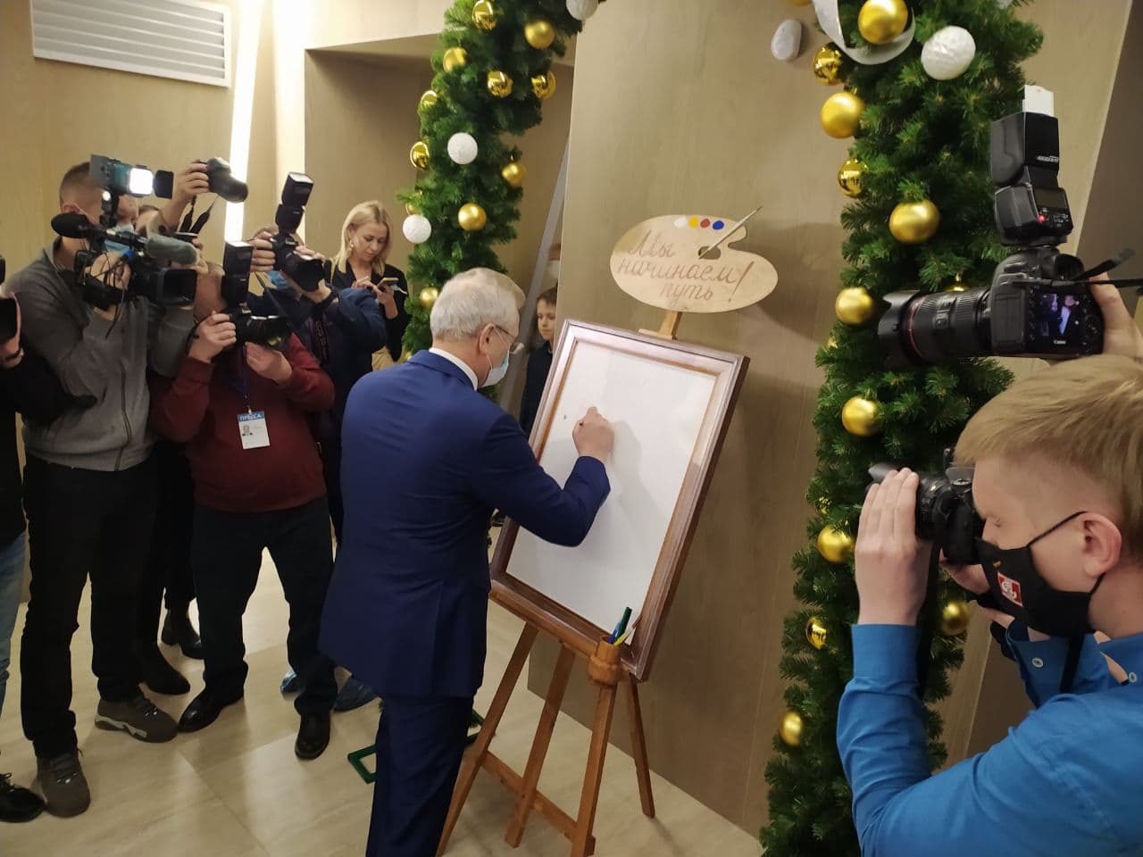 Глава региона написал первое пожелание коллективу и тем, кто будет приходить сюда на различные мероприятия, кружки и секции.