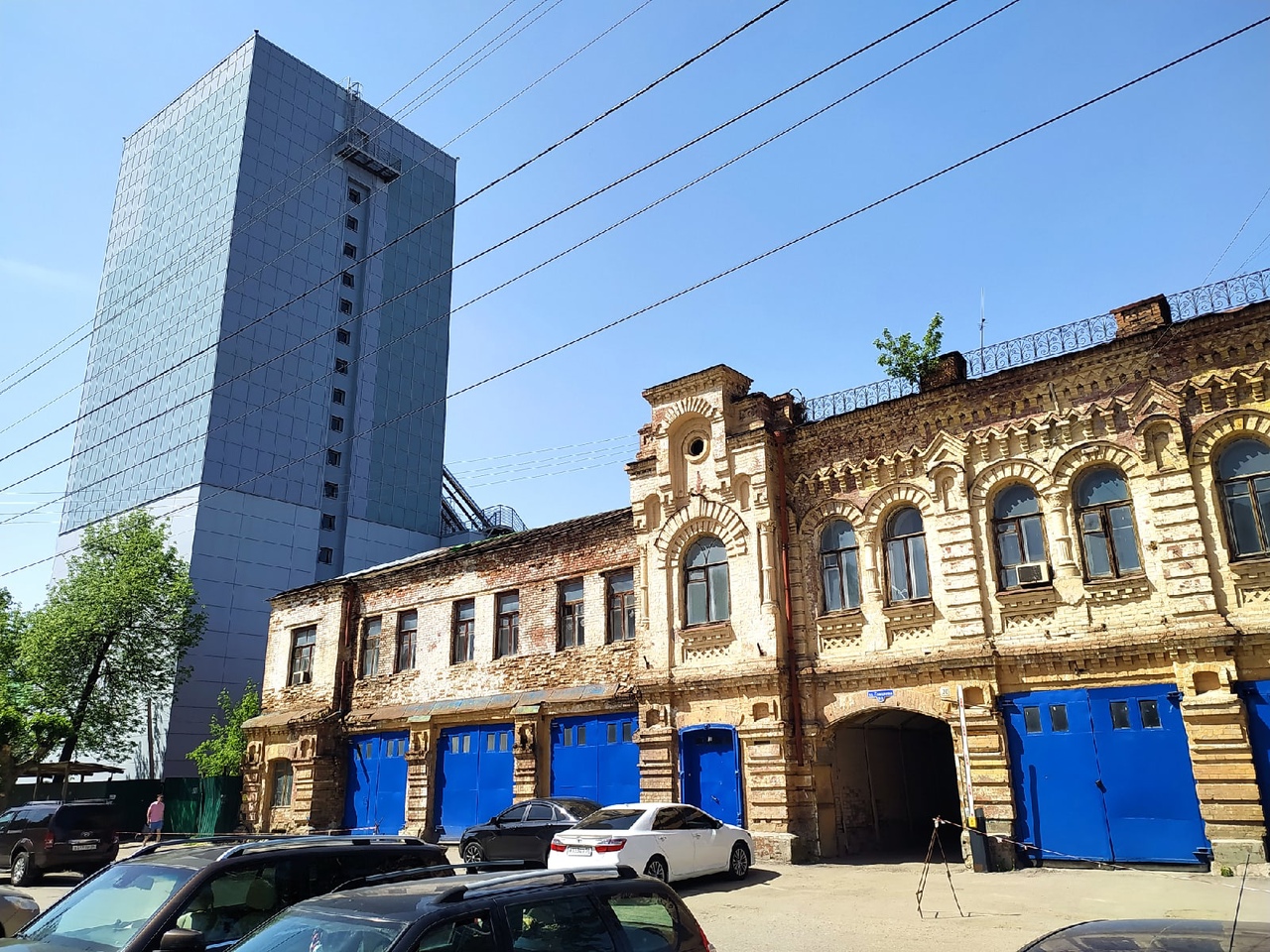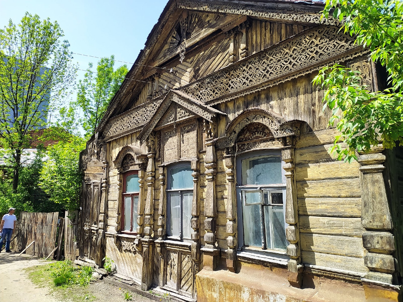 Иду дальше. Улица Гладкова — замечательные дома в ужасном состоянии с высоткой-гостиницей строящегося цирка посередине.