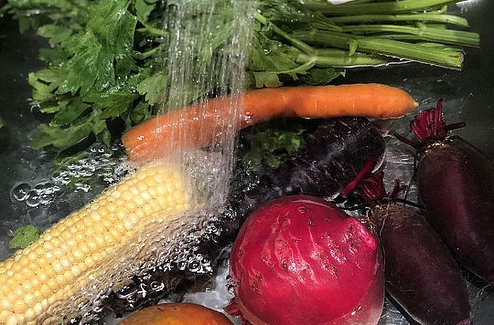 Считается, что смывать химикаты и микроорганизмы с поверхности всех фруктов, овощей и зелени нужно в горячей воде, с губкой и моющими средствами. Но правда ли это? Нет. Овощи и плоды со съедобной гладкой кожицей достаточно тщательно промыть в проточной чистой воде, пригодной для питья.