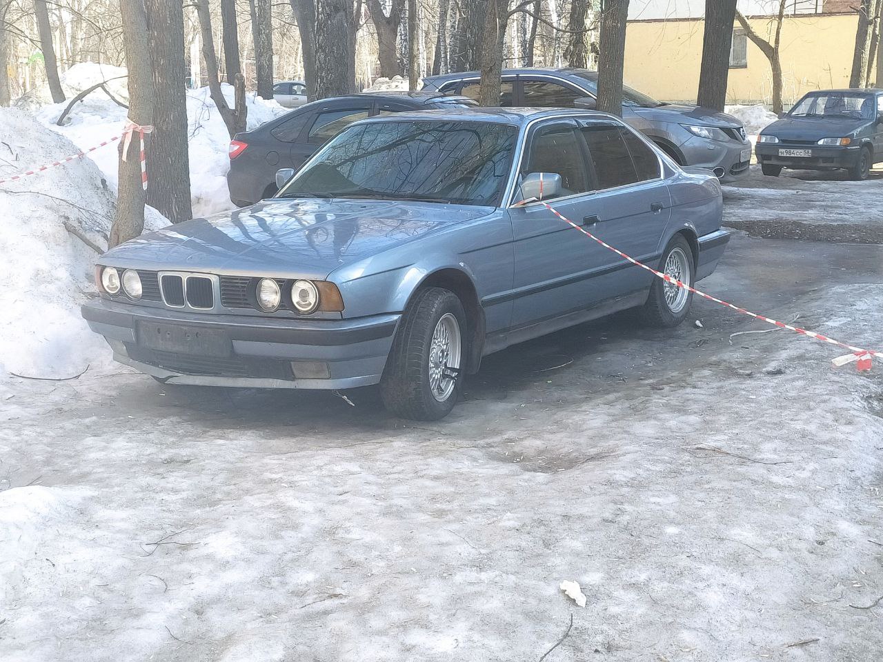 На повороте за угол растянуты предупреждающие ленточки, с одной стороны прикрученные прямо к зеркальцу стоящей у дома машины.
