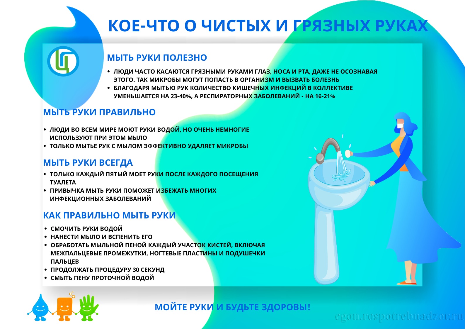 «Установлено, что частое мытье рук родителей с мылом способствует снижению смертности среди детей раннего возраста от острых респираторных инфекций на 20% и от острых кишечных инфекций на 50%», - сообщают специалисты Роспотребнадзора.