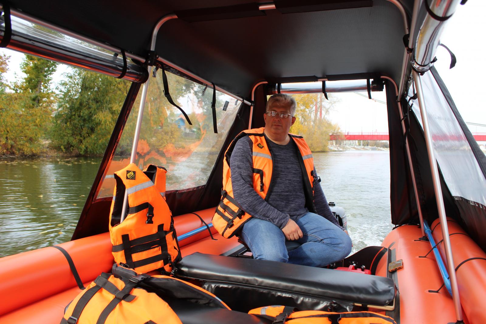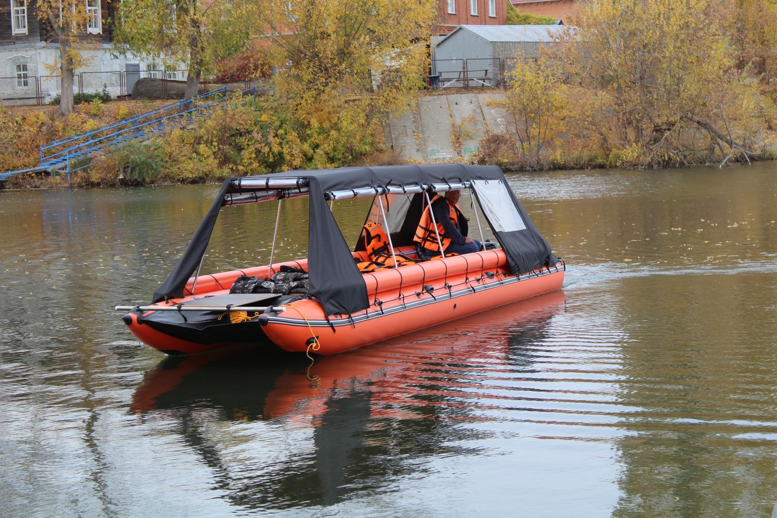 «При восьмиметровой длине и двухметровой ширине - это самое большое речное судно в городской черте. Это моторная лодка катамаранного типа — она представляет собой большой туристический катамаран, у которого есть и тент, и удобные мягкие сидушки. Судно всепогодное - сверху можно опустить окна. Так что ходить на нем можно даже в дождь или снег, но для Пензы такого и не требуется», - говорит Денис Симонов.