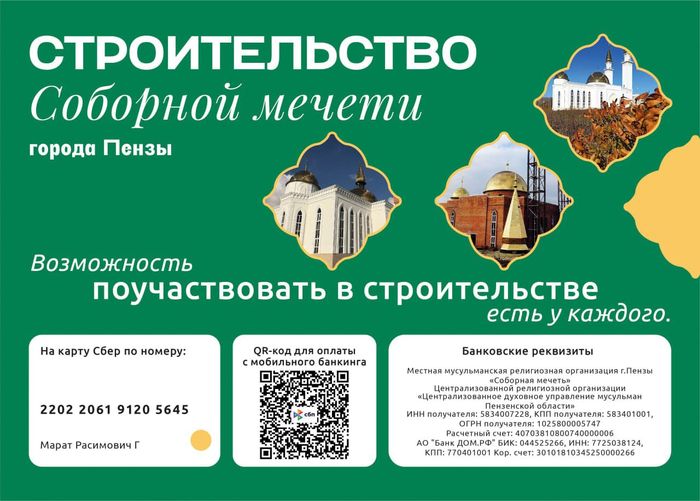 Строительство масштабного объекта продолжается уже больше десяти лет. Причина проста - деньги на работы собирают исключительно путем пожертвований. Пензенский муфтий призвал неравнодушных жителей региона принять активное участие в завершении возведения Соборной мечети. «Если на то будет воля Всевышнего, надеемся, что может быть к осени даже откроем», - отметил руководитель Централизованного духовного управления мусульман Пензенской области.